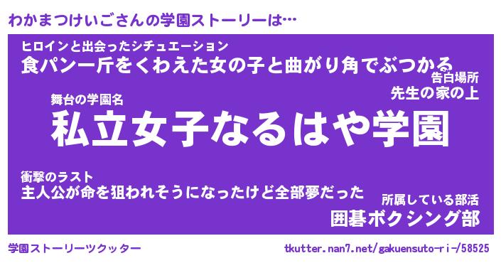| 伝説のあだ名 | 『不死鳥のスナイパーわかまつけいご』 |
