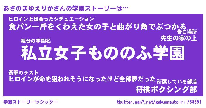 女子向けラノベタイトル風あだ名 | 『あさのまゆえりか姫と円卓の騎士』 |