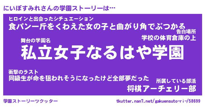| ヒーロー風カッコイイあだ名 | 『スーパーニイボスミレ』『幻影騎士ニイ』 |