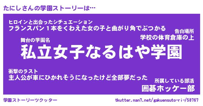 | ヒーロー風カッコイイあだ名 | 『スーパータニシ』『ウルトラたにしマン』 |