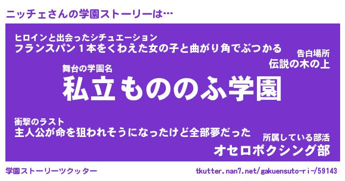 | 男性向けラノベタイトル風あだ名 | 『ニッチェの憂鬱』 |