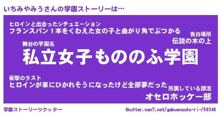 | 男性向けラノベタイトル風あだ名 | 『イチミヤミウアートオンライン』 |
