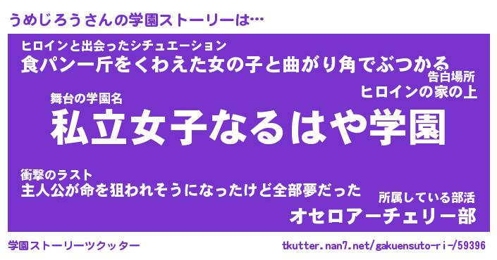 | ファンタジー風あだ名 | 『ウメフェル』『エターナルウメジロウー』 |