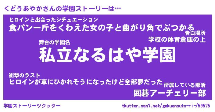| 男性向けラノベタイトル風あだ名 | 『くどうあやかの憂鬱』 |