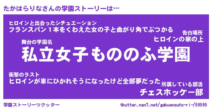 | 女子向けラノベタイトル風あだ名 | 『たかはらりな姫と円卓の騎士』 |