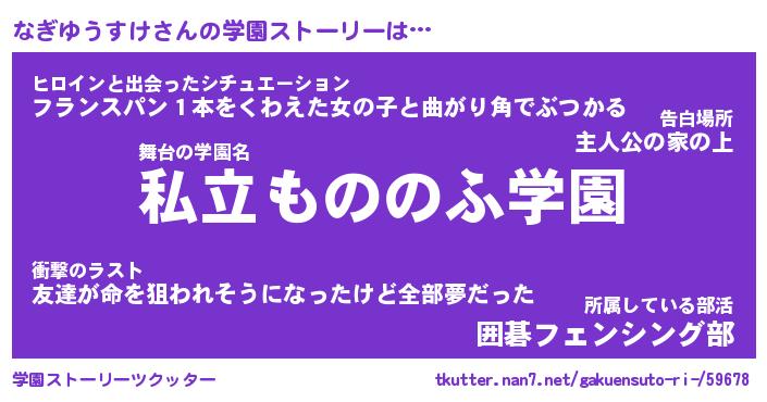 | 女子向けラノベタイトル風あだ名 | 『なぎゆうすけ姫と円卓の騎士』 |
