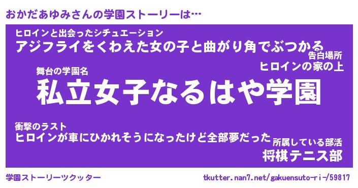 | 伝説のあだ名 | 『封印されしスナイパーおかだあゆみ』 |