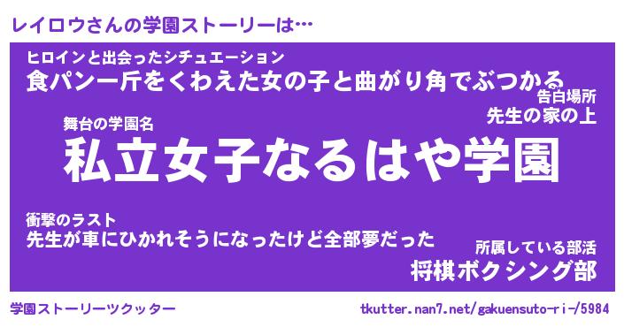 | ファンタジー風あだ名 | 『レイフェル』『エターナルレイロウー』 |