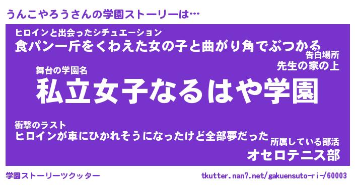 | ピコ太郎風あだ名 | 『ウコ六郎』『ピウ五郎』『ウン次郎』 |