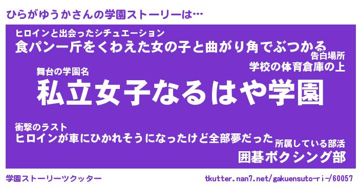 | ヒーロー風カッコイイあだ名 | 『スーパーヒラガユウカ』『炎刃騎士ヒラ』 |