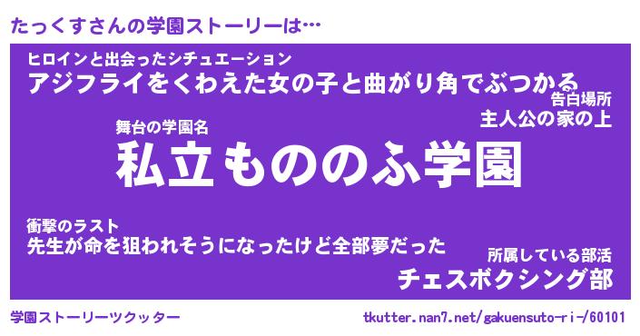 | 告白場所 先生の家の上 …「ふぃぎゅこ」 | 2月17日 06:24 |