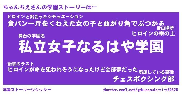 | 女子向けラノベタイトル風あだ名 | 『ちゃんちえ姫と円卓の騎士』 |