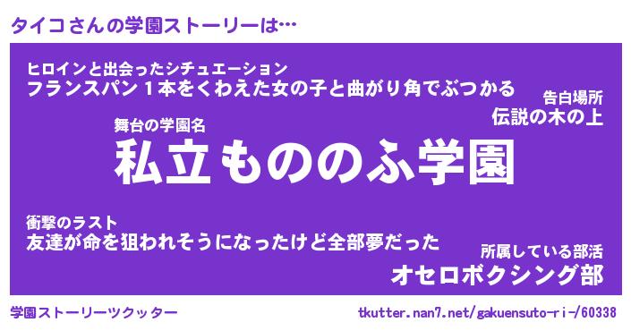 | 男性向けラノベタイトル風あだ名 | 『タイコの憂鬱』 |