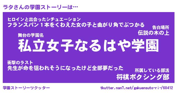 | ヘコむあだ名 | 『ラタもー』『豆乳』『ラタっ子』 |