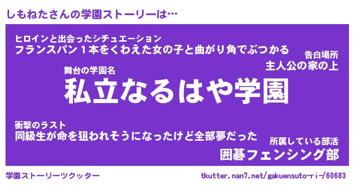| 男性向けラノベタイトル風あだ名 | 『しもねたの憂鬱』 |