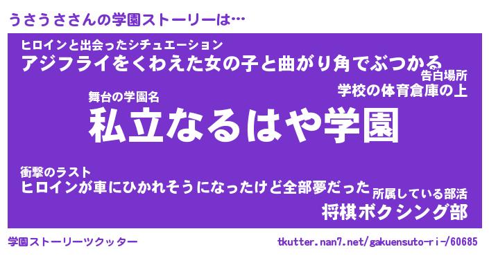 | 男性向けラノベタイトル風あだ名 | 『うさうさの憂鬱』 |