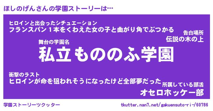 | 男性向けラノベタイトル風あだ名 | 『ほしのげんの憂鬱』 |
