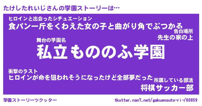 | 男性向けラノベタイトル風あだ名 | 『たけしたれいじの憂鬱』 |