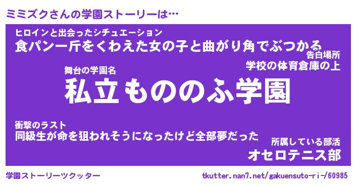 | 女子向けラノベタイトル風あだ名 | 『(仮)ミミズクのやんごとなき事情』 |
