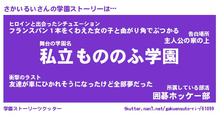 | 男性向けラノベタイトル風あだ名 | 『さかいるいの憂鬱』 |