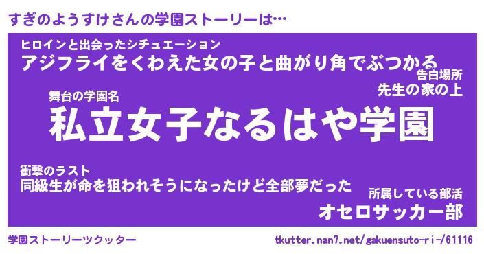 | 女子向けラノベタイトル風あだ名 | 『誰かこのすぎのようすけを説明してください! ~契約から始まるウェディング~』 |