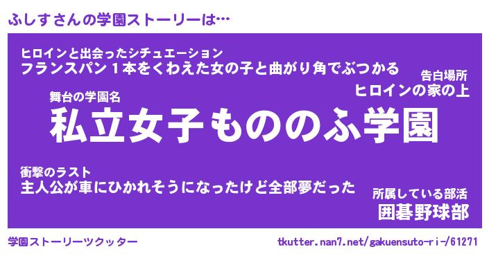 | ヘコむあだ名 | 『ふしにー』『豆乳』『ふしを』 |