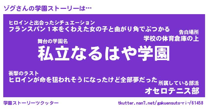 | ヘコむあだ名 | 『ゾグもー』『なまこ酢』『ゾグ太郎』 |