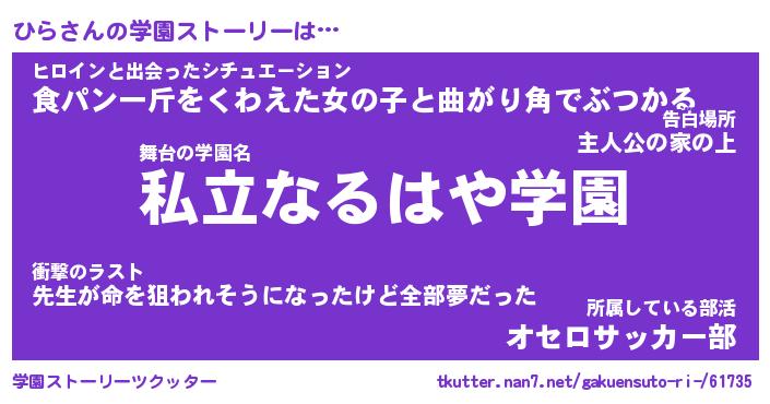 | 告白場所 先生の家の上 …「ふぃぎゅこ」 | 2月17日 06:24 |