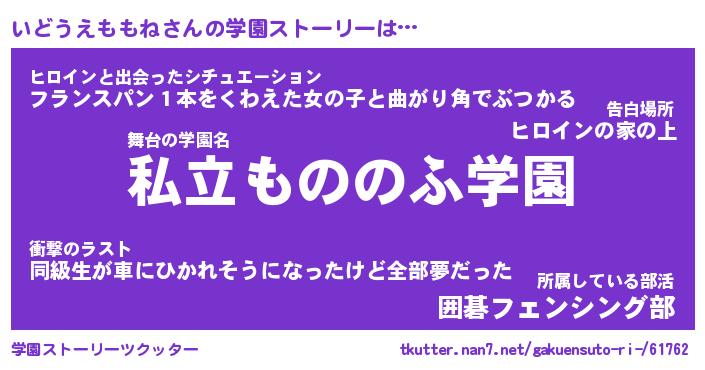 | 女子向けラノベタイトル風あだ名 | 『(仮)いどうえももねのやんごとなき事情』 |