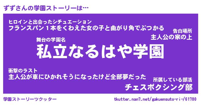 | 男性向けラノベタイトル風あだ名 | 『ずずの憂鬱』 |