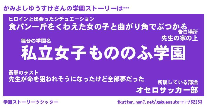 | 女子向けラノベタイトル風あだ名 | 『誰かこのかみよしゆうすけを説明してください! ~契約から始まるウェディング~』 |