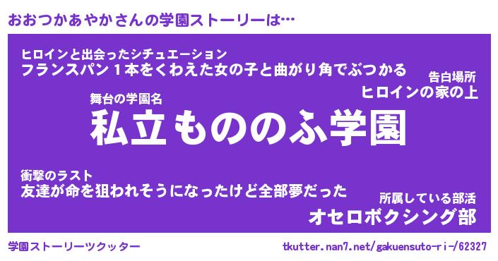 | 女子向けラノベタイトル風あだ名 | 『(仮)おおつかあやかのやんごとなき事情』 |