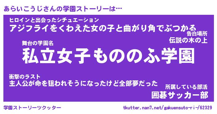 | 男性向けラノベタイトル風あだ名 | 『アライコウジアートオンライン』 |