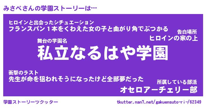 | 男性向けラノベタイトル風あだ名 | 『みさぺの憂鬱』 |