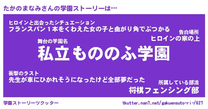 | 女子向けラノベタイトル風あだ名 | 『(仮)たかのまなみのやんごとなき事情』 |