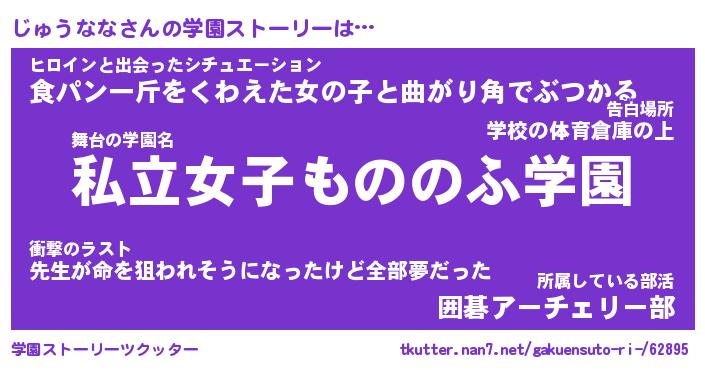 | ファンタジー風あだ名 | 『ジュフェル』『エターナルジュウナナー』 |