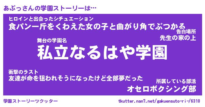 | 男性向けラノベタイトル風あだ名 | 『あぷっの憂鬱』 |