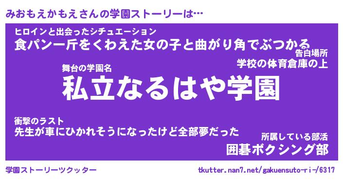 | 伝説のあだ名 | 『不死鳥のスナイパーみおもえかもえ』 |