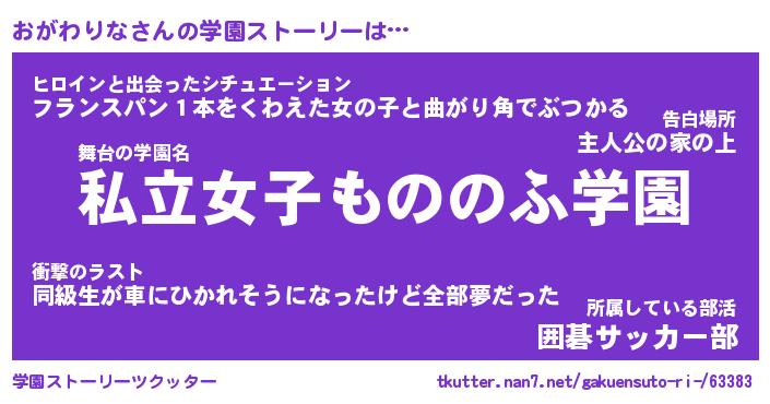 | 告白場所 先生の家の上 …「ふぃぎゅこ」 | 2月17日 06:24 |