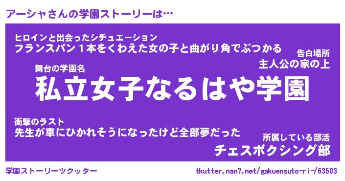 | 意味不明あだ名 | 『ペロリンアーシャ』『永久保存アーシャ』 |