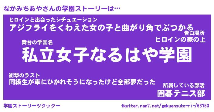 | 伝説のあだ名 | 『封印されしスナイパーなかみちあや』 |