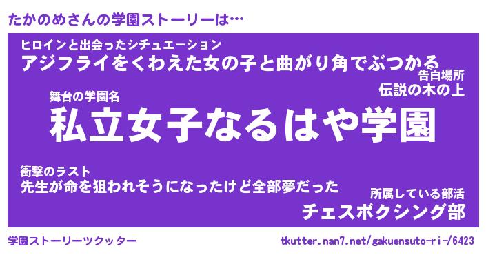| 男性向けラノベタイトル風あだ名 | 『タカノメアートオンライン』 |