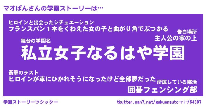 | ファンタジー風あだ名 | 『マオフェル』『エターナルマオパンー』 |