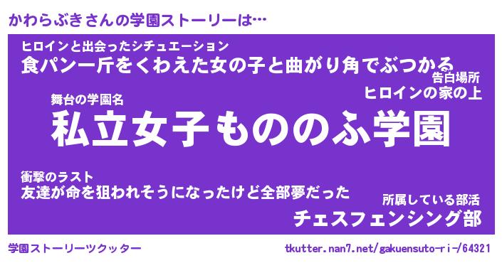 | 男性向けラノベタイトル風あだ名 | 『カワラブキアートオンライン』 |