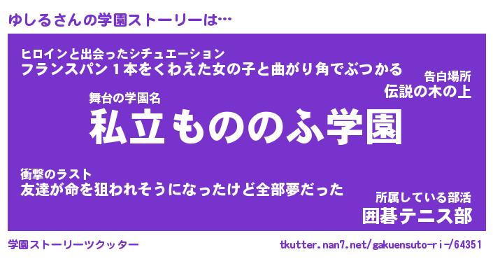 | 男性向けラノベタイトル風あだ名 | 『ゆしるの憂鬱』 |