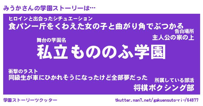 | 女子向けラノベタイトル風あだ名 | 『(仮)みうかのやんごとなき事情』 |