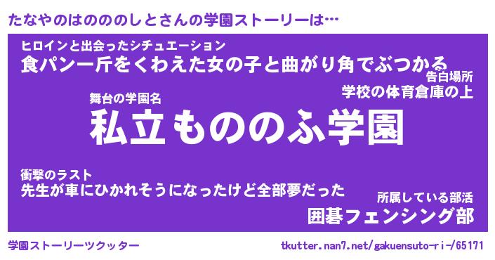 | 男性向けラノベタイトル風あだ名 | 『たなやのはのののしとの憂鬱』 |