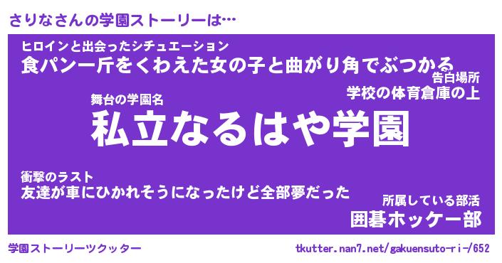 | 伝説のあだ名 | 『伝説のスナイパーさりな』 |