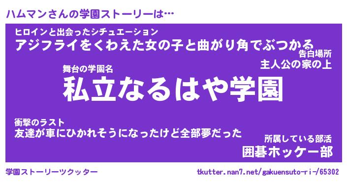| 男性向けラノベタイトル風あだ名 | 『ハムマンの憂鬱』 |