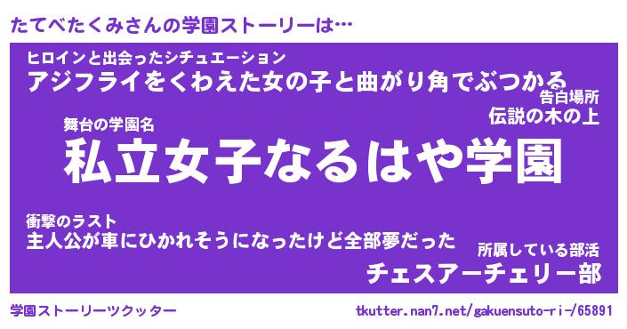 | ヒーロー風カッコイイあだ名 | 『スーパータテベタクミ』『天弓騎士タテ』 |